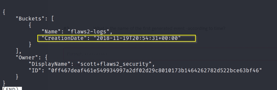 What is the 'creation' date of the bucket 'flaws2-logs'?