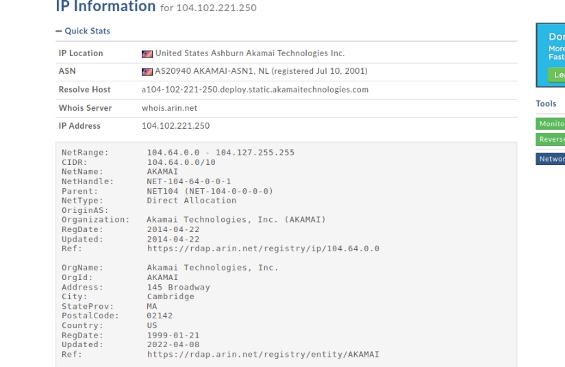 Why? Using whoisdomaintools we can search up this up and we see that it is not assigned to AWS