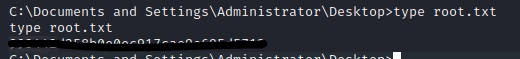 Next is the root flag. In the C:\Documents and Settings\Administrator\Desktop directory we will find the root flag.