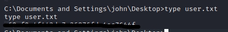 In the C:\Documents and Settings\john\Desktop directory, we will find our user flag.
