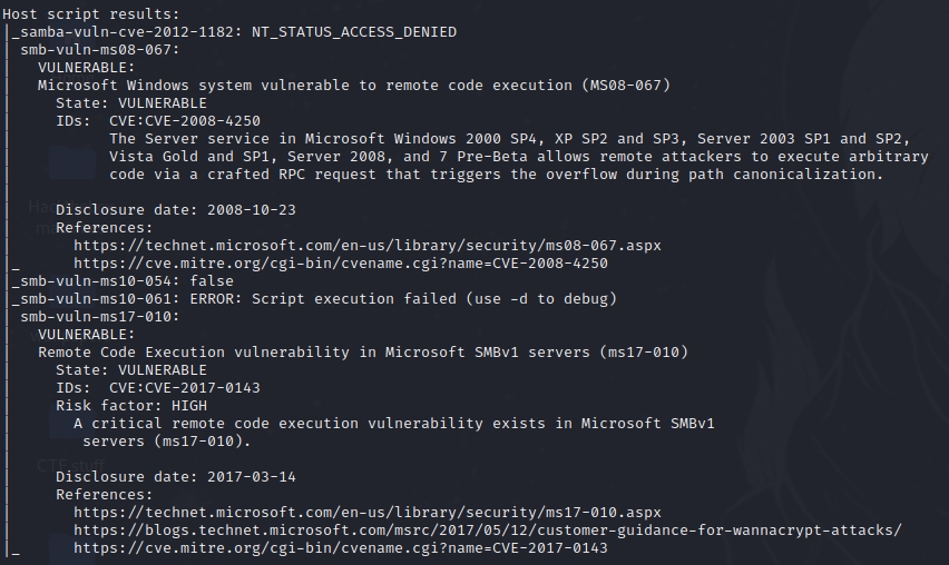 Using the above results we search for an smb exploitation we can use Nmap to get some ideas. We use nmap -Pn --script=vuln 10.10.10.4