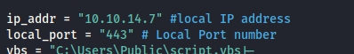 Using this script we just need to change 2 lines of code and place our ip and port our listener will be on.