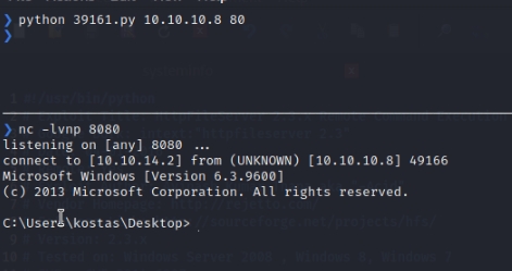 Once the correct ip is placed we set a listener in our kali and run the python script.