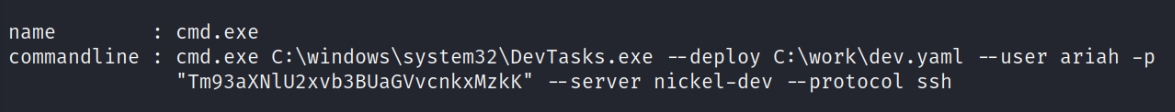 And it worked we see a list of running processes, and looks like it contains some credentials. I tossed the password in cyberchef and decoded it to NowiseSloopTheory139