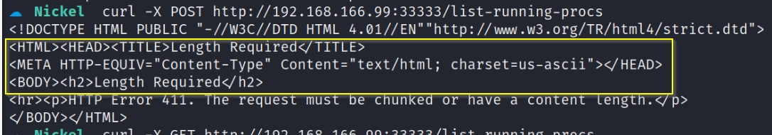 cmd used: curl -d "" -X POST http://192.168.166.99:33333/list-running-procs