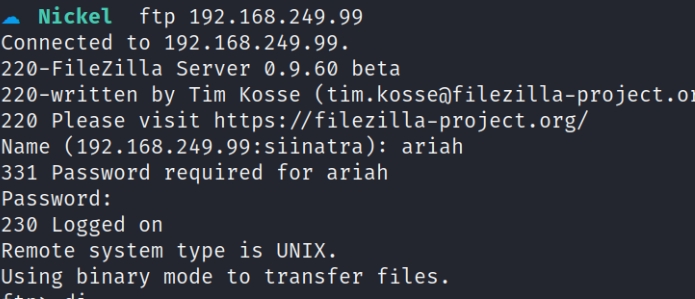 Using these credentials we can ssh to the host. Doing this I was able to grab the user flag and and snoop around the system, I tried some of the basic privilege escalation techniques but all were not successful. But I remember there was a ftp port that I totally forgot was in the nmap scan so I tried logging in as ariah.